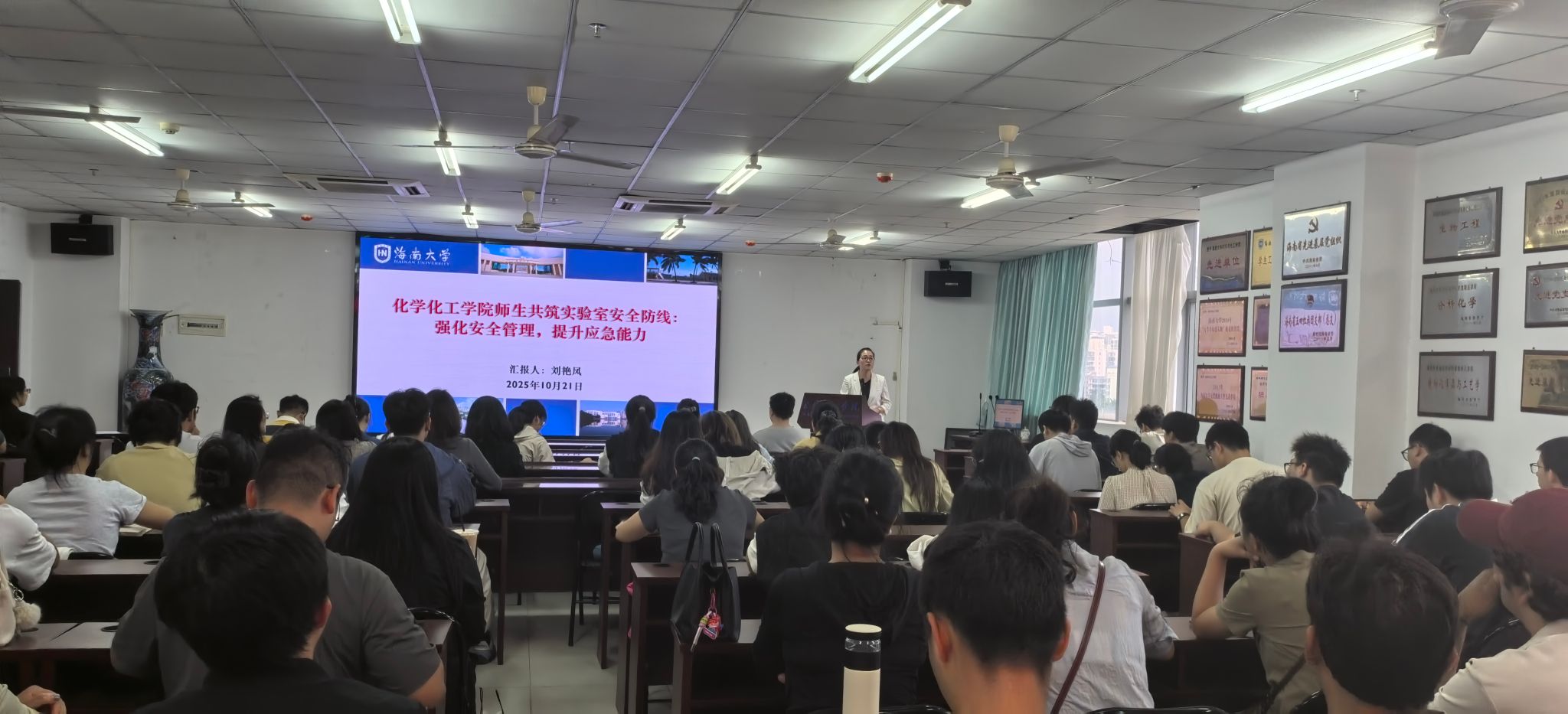 为全面强化实验室安全管理效能,切实提升师生安全素养与应急处置能力,10月20日下午,suncitygroup太阳集团以“共筑实验室安全防线:强化安全管理,提升应急能力”为主题举办了专题培训。本次培训由公司副经理刘艳凤主讲,全院约150名师生积极参与,实验室与设备管理处全程提供专业指导与技术支持。