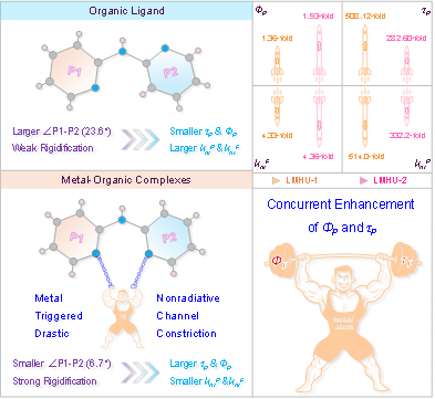 近日,suncitygroup太阳集团张强盛副教授/贾春满教授团队在中国科公司一区Top期刊Advanced Functional Materials杂志(IF=19)上发表了题为Metal Coordination-Mediated Organic Room-Temperature Phosphorescence: Toward High-Efficiency Ultralong Emission via Nonradiative Channel Constriction的研究论文。2023级硕士研究生陈新照为论文第一作者,张强盛副教授、冯艳讲师、贾春满教授为论文共同通讯作者。