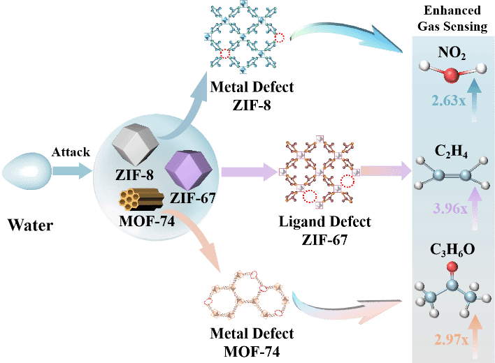 进展一:水诱导缺陷工程显著提升MOFs气体传感性能;